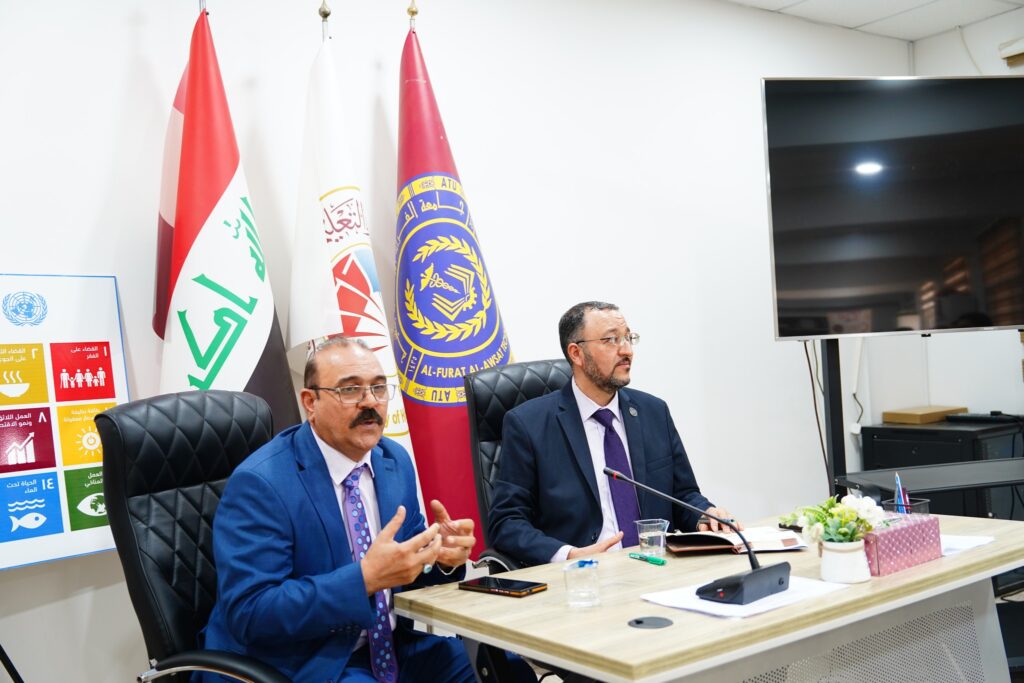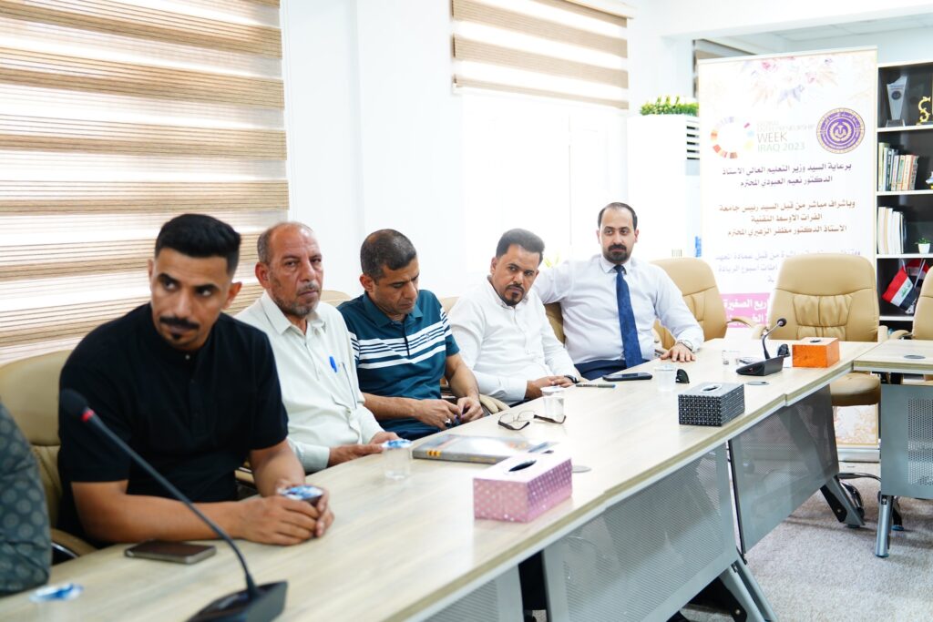 استهل الاجتماع بنقل تحيات وتهاني السيد رئيس جامعة الفرات الأوسط التقنية الأستاذ الدكتور حسن الزبيدي المحترم بمناسبة بدء العام الدراسي الجديد، متمنيا ًللجميع عاما ًدراسيا ً مثمرا بالعطاء.وأشاد بالجهود المتميزة للأستاذ الدكتور صباح المطوكي عميد الكلية السابق خلال فترة توليه عمادة الكلية، وما تحقق من إنجازات أسهمت في تطوير مسيرتها العلمية.