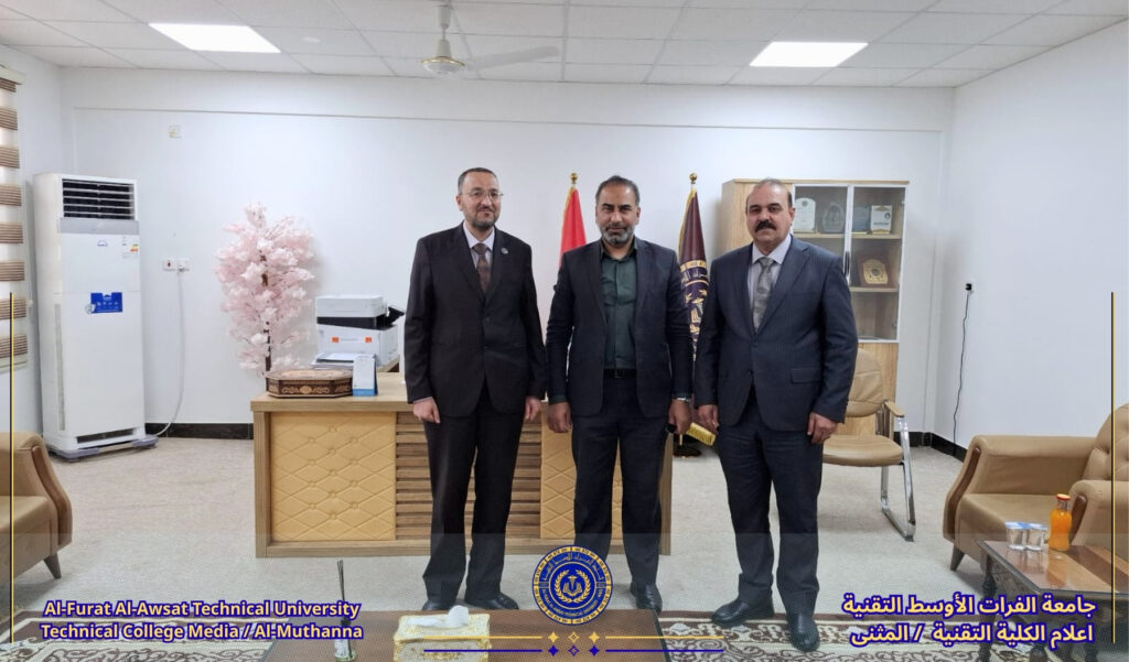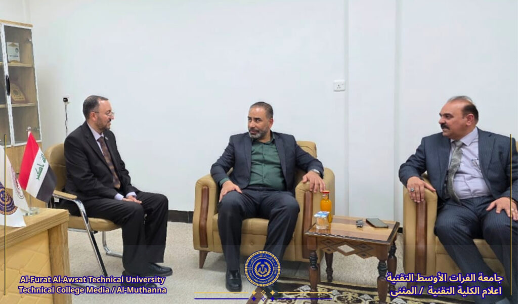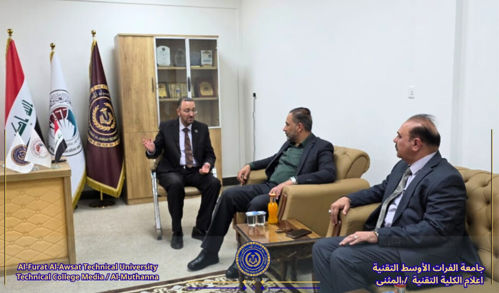 استقبل عميد الكلية التقنية الهندسية للنفط الطاقة / المثنى الأستاذ المساعد الدكتور صادق حسن اللوزي استشاري رئيس مجلس الوزراء لشؤون محافظة المثنى والمشرف والمتابع لأعمال الجهد الخدمي والهندسي في المحافظة الدكتور علي حمزة مزبان بحضور معاون العميد للشؤون الإدارية والمالية الدكتور خليل راضي الزلزلي.