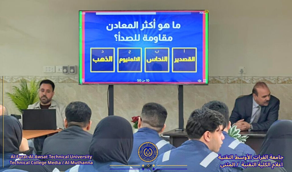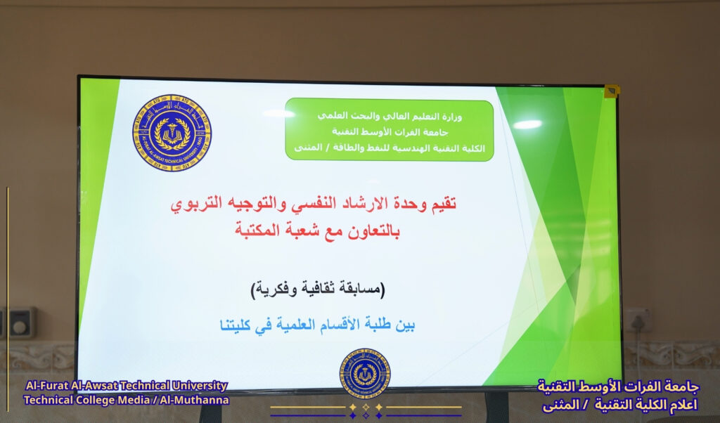 بتوجيه مباشر من عميد الكلية التقنية أ م .د صادق حسن اللوزي نظمت شعبة النشاطات الطلابية بالتعاون مع وحدة الإرشاد النفسي والمكتبة المركزية في الكلية مسابقة علمية ثقافية مميزة لطلبة الكلية،