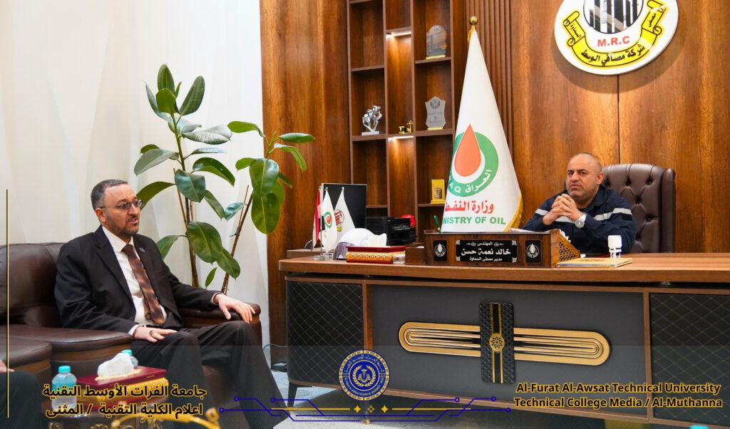 لتعزيز التعاون مع المؤسسات النفطية، زار الاستاذ المساعد الدكتور صادق حسن اللوزي عميد الكلية التقنية الهندسية للنفط والطاقة /المثنى برفقة وفد من الكلية، مصفى السماوة.